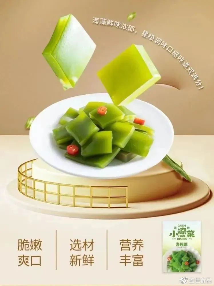 全国糖酒会是年度新品最佳发布平台之一,盖世食品携最新研发的预制菜新品盖世海榨菜在该平台惊艳发布。盖世海榨菜精选农产品地理标志保护产品大连裙带菜的优质梗段,加工工艺先进健康,产品新颖时尚,健康营养,并且口感脆嫩,风味独特,是传统酱腌菜的迭代产品,有望成为媲美“涪陵榨菜”的现象级预制凉菜单品!