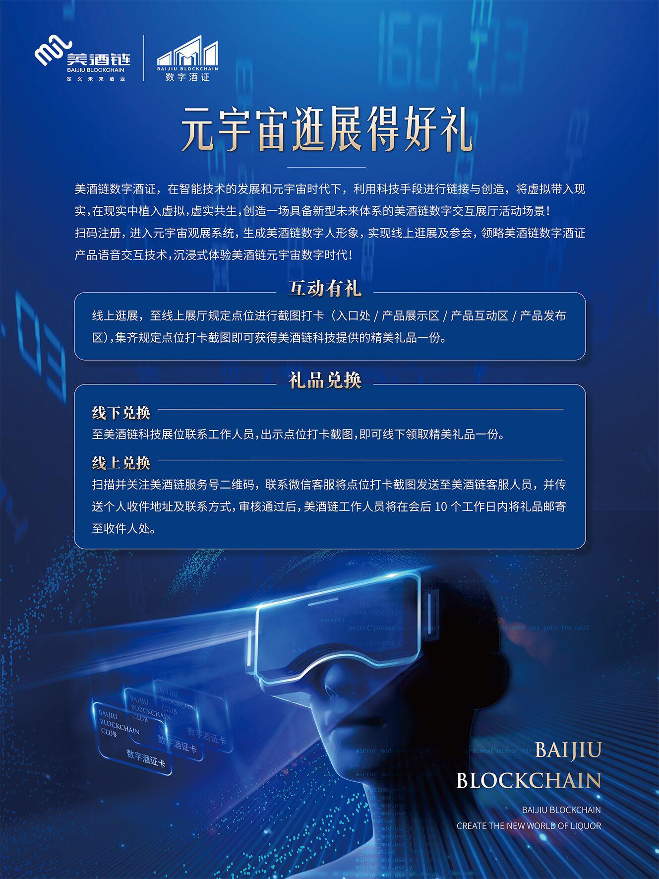 美酒链科技品牌日当天(4月12日),线上观展者可通过元宇宙通道注册选择自己数字分身,并操作数字分身进入元宇宙世界,实现线上逛展及参会。在领略语音交互技术的同时,美酒链科技还设置了观展有礼活动,参与者在指定地点打卡后,就能获得精美礼品一份(线下观众在当日活动结束后,可当场领取)。