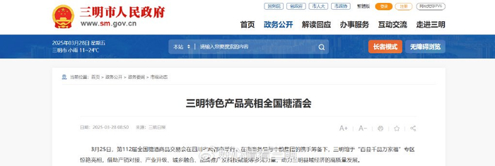 3月25日,第112届全国糖酒商品交易会在四川省成都市举行。在市商务局与中粮集团的携手筹备下,三明馆于“百县千品万家福”专区惊艳亮相,借助产销对接、产业升级、城乡融合、品牌推广及科技赋能等多元力量,助力三明县域经济的高质量发展。