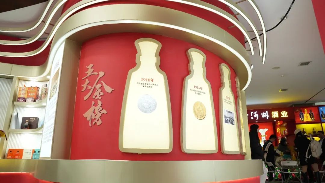 展厅设计精妙绝伦,巧妙地将传统与现代元素融为一体,首先映入眼帘的便是那大气磅礴的大型品牌展示区,西凤酒标志性的logo与彰显品牌底蕴的标语,在柔和而明亮的灯光映照下,散发着独特的魅力,瞬间吸引众人的目光。