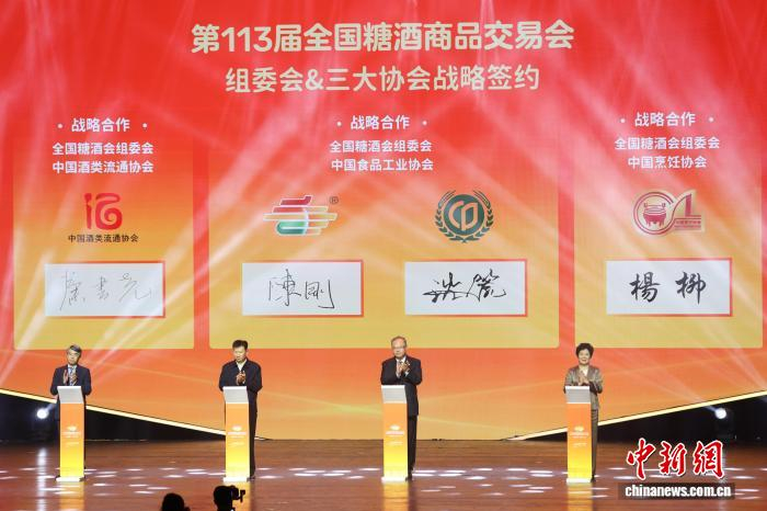 开幕专题活动现场。中新网记者 泱波 摄开幕专题活动中,全国糖酒会组委会与中国食品工业协会、中国烹饪协会、中国酒类流通协会共同签署合作备忘录,强化糖酒会在食品、餐饮、酒类领域的新品首发、趋势引领功能,以链接产业前沿、激活消费潜力。(完)