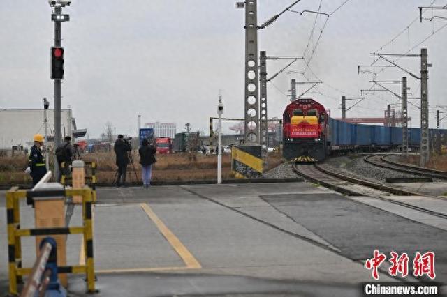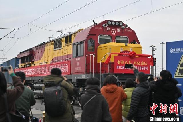 3月7日,四川成都,一列从荷兰蒂尔堡出发,满载德国葡萄酒、法国奶酪、比利时巧克力等商品的成都国际班列第112届全国糖酒商品交易会专列(简称“糖酒会专列”)抵达成都国际铁路港集装箱中心站。第112届全国糖酒商品交易会将于2025年3月25日至27日在成都举行,预计将有来自50多个国家和地区的2000余个国际品牌参展。中新社记者 张浪 摄